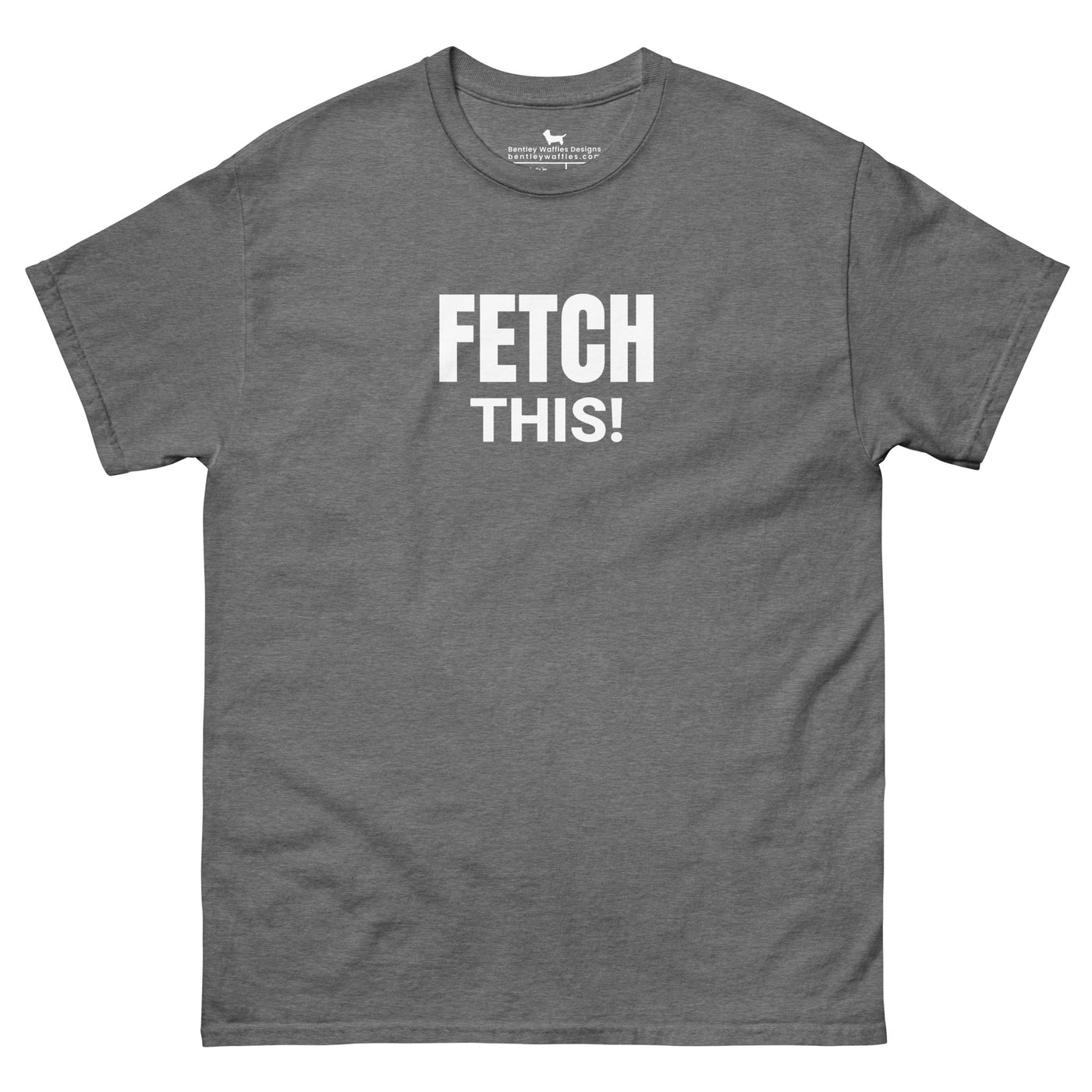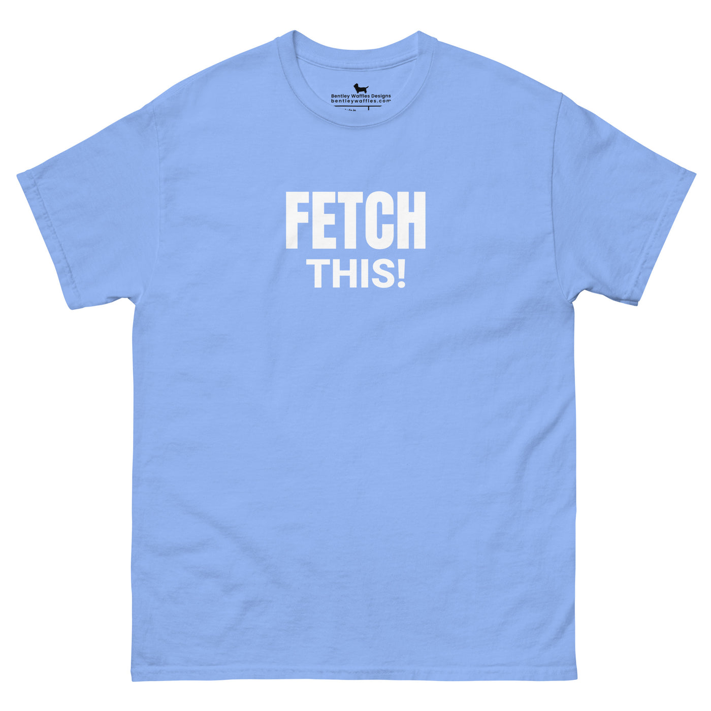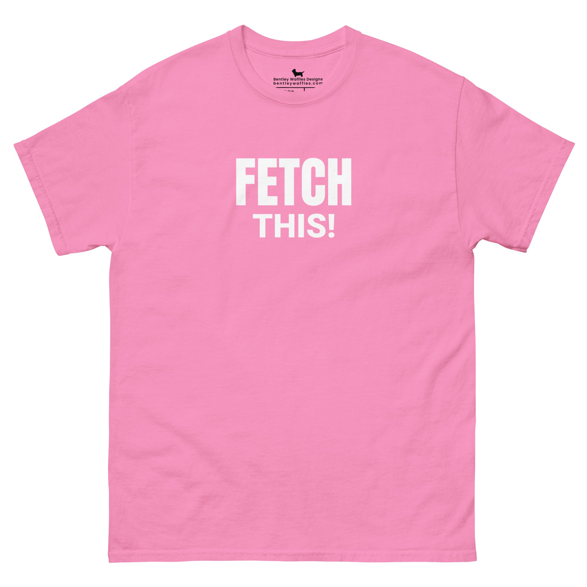 Show off your love for your dog with our Classic Gilden 5000 T-shirt! Designed for comfort and style, this unisex tee features a structured look that maintains sharp lines at the edges. The front proudly displays the playful phrase "Fetch This," perfect for dog lovers who appreciate a touch of fun. Made from high-quality materials, this T-shirt is as durable as it is comfortable, making it an essential addition to your wardrobe. Get ready to turn heads and share your passion with this must-have tee from Bentley Waffles Designs, available in various colors and sizes!