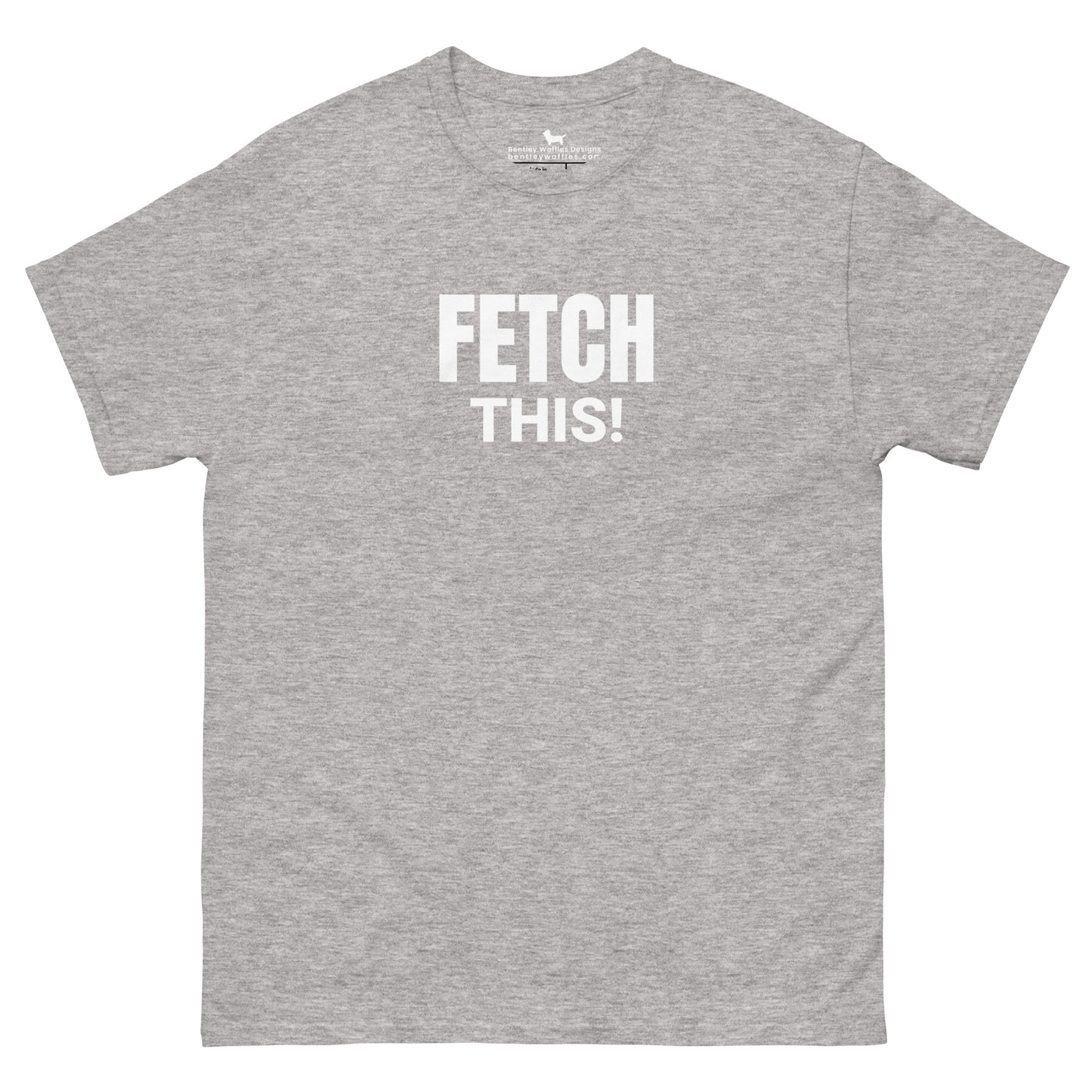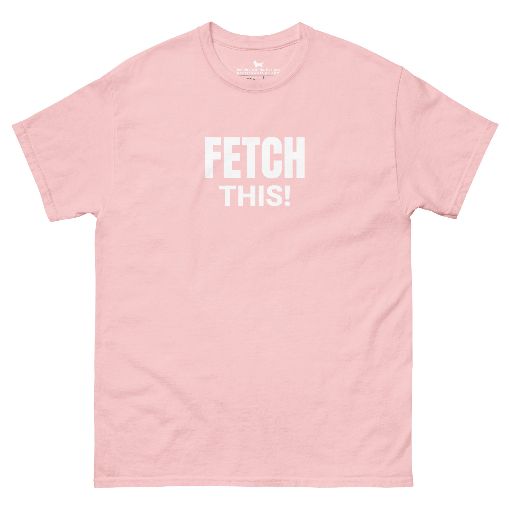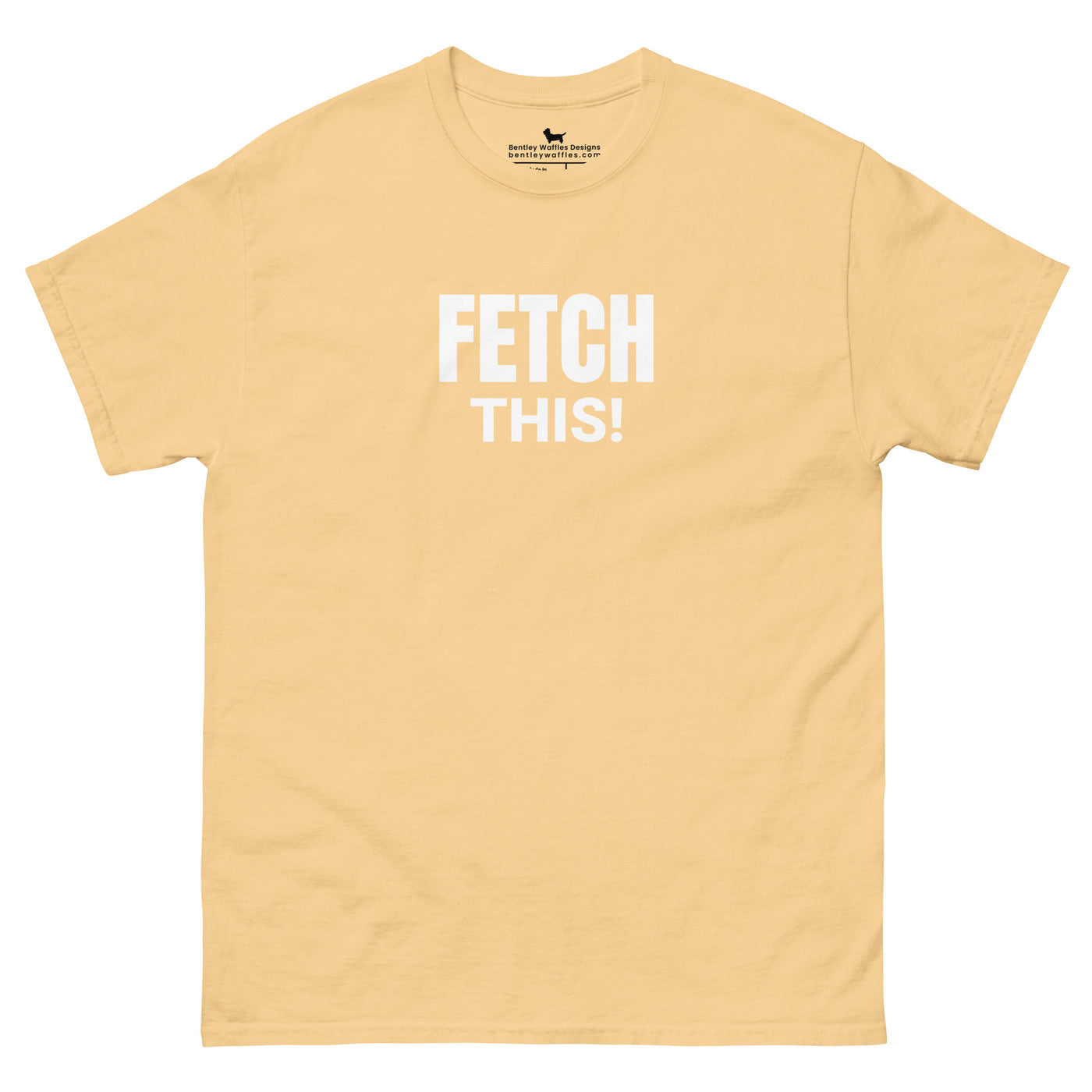 Show off your love for your dog with our Classic Gilden 5000 T-shirt! Designed for comfort and style, this unisex tee features a structured look that maintains sharp lines at the edges. The front proudly displays the playful phrase "Fetch This," perfect for dog lovers who appreciate a touch of fun. Made from high-quality materials, this T-shirt is as durable as it is comfortable, making it an essential addition to your wardrobe. Get ready to turn heads and share your passion with this must-have tee from Bentley Waffles Designs, available in various colors and sizes!
