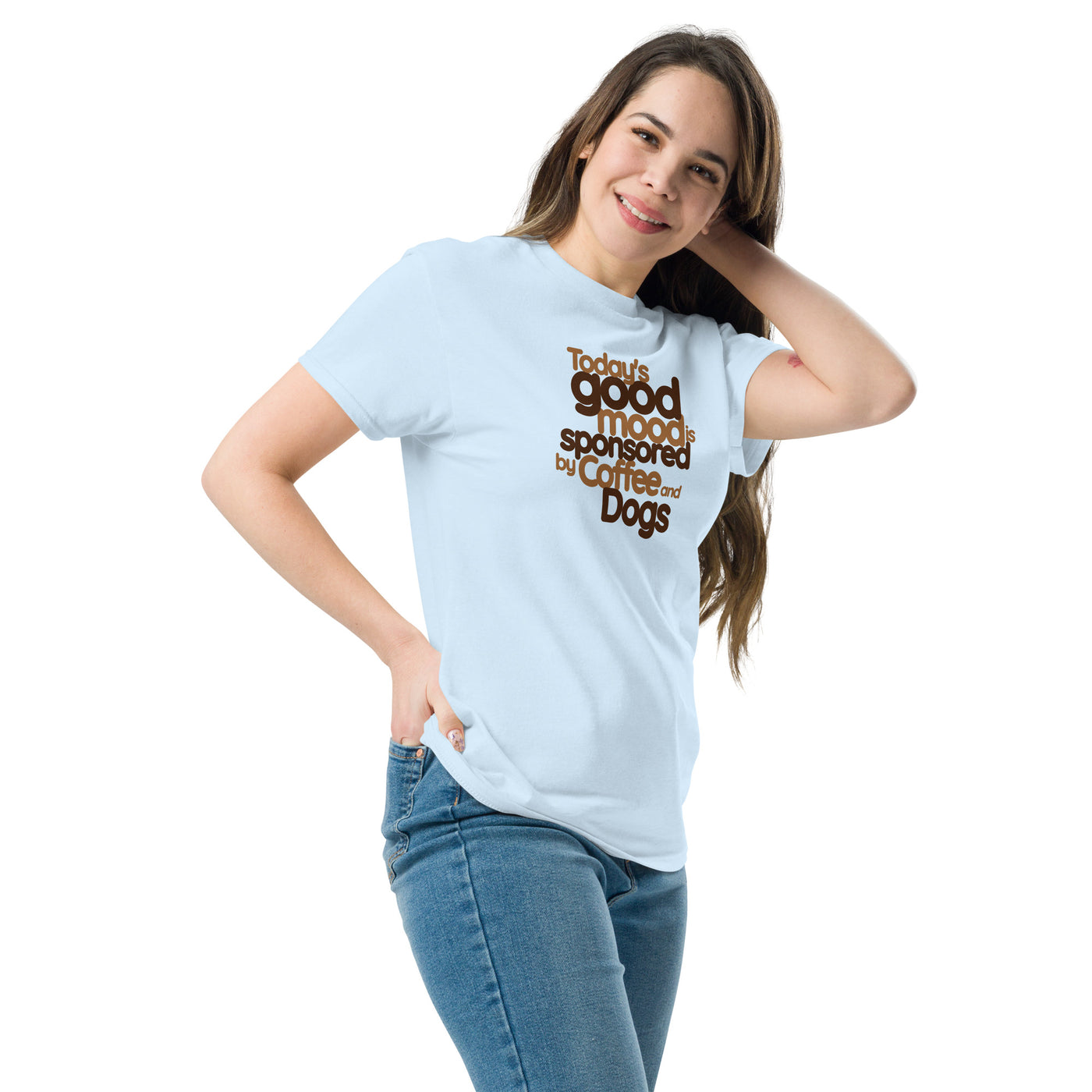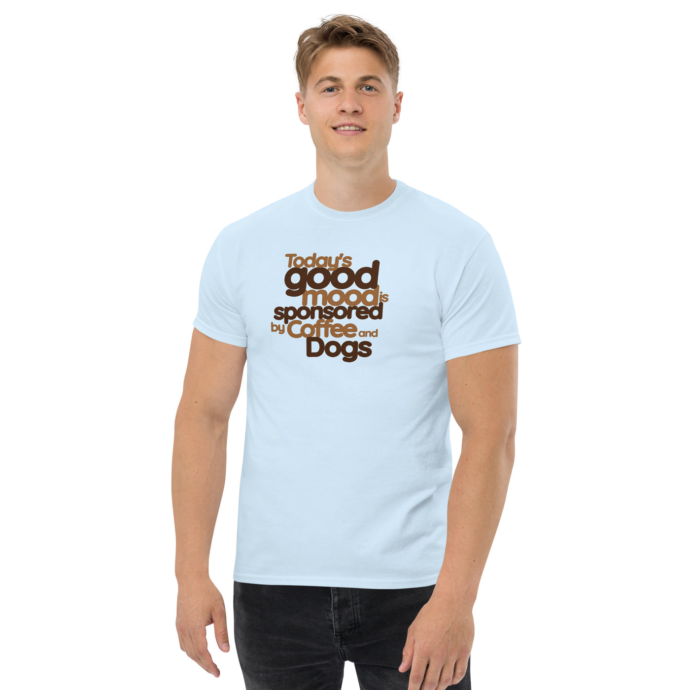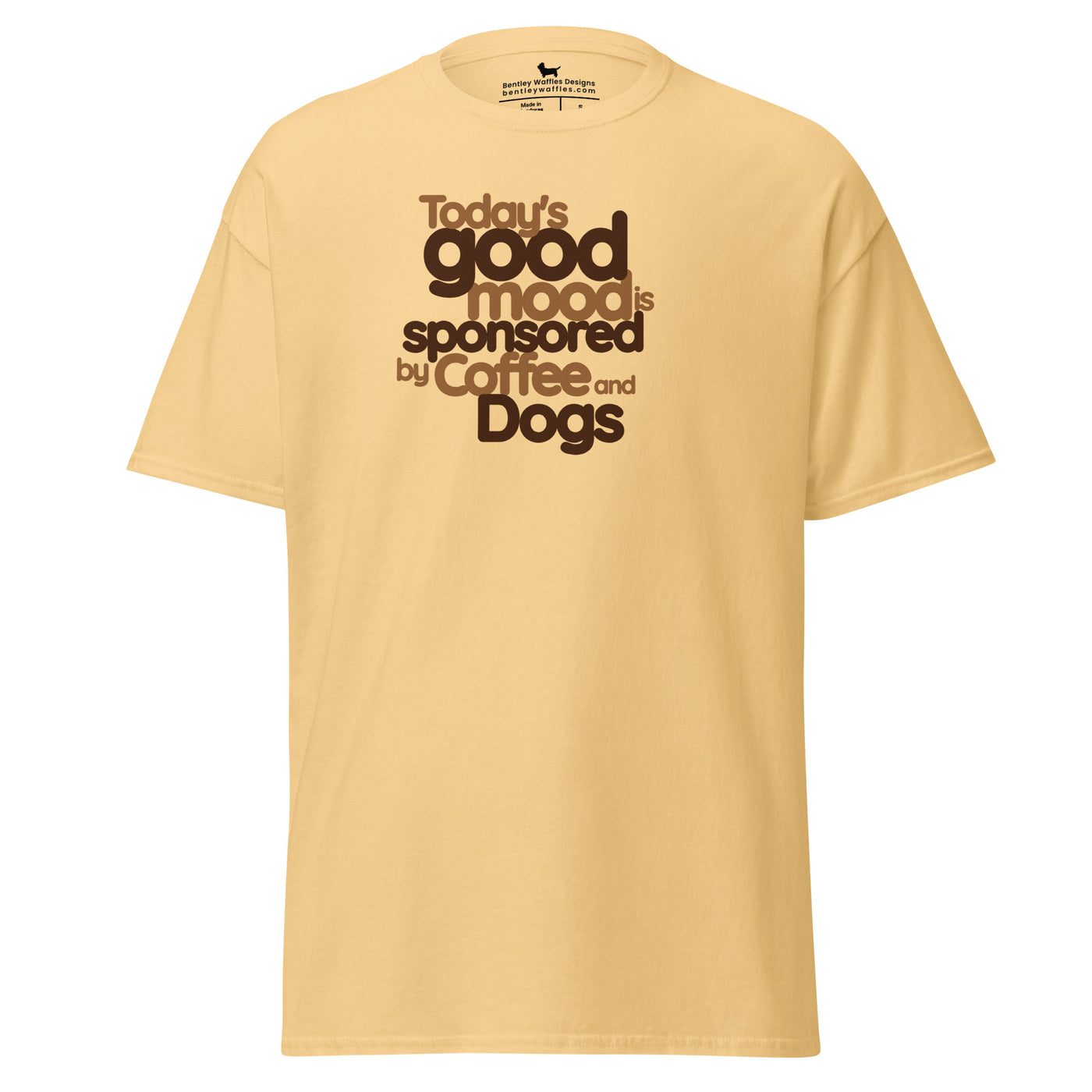 Elevate your casual style with our Unisex Gildan 5000 Classic Fit Tee, the perfect addition to your layered outfits! This trendy and fun shirt combines comfort and personality, making it an essential wardrobe staple for coffee enthusiasts and dog lovers alike. Made from high-quality materials, this classic fit tee offers a relaxed, flattering silhouette that suits everyone. The playful phrase “Today's Good Mood is Sponsored by Coffee and Dogs” celebrates two of life’s greatest joys! Whether you're enjoying a cozy coffee date, heading out for a walk with your furry friend, or just lounging at home, this shirt expresses your whimsical spirit perfectly. Embrace the delightful combination of caffeine and canine companionship with this fun, eye-catching tee.
