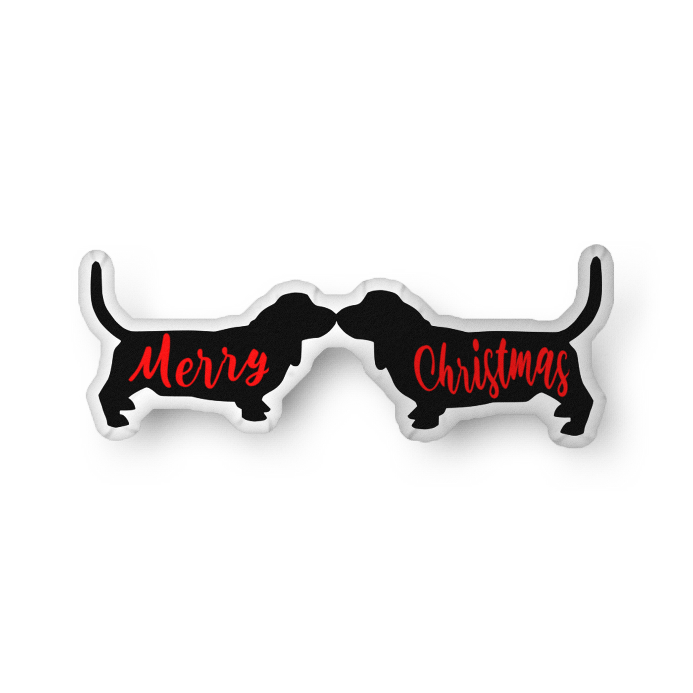 Celebrate the holiday season with our charming 22-inch pillow, featuring two elegant basset hound silhouettes facing each other, beautifully embracing the spirit of togetherness. The heartwarming message "Merry Christmas" is artfully displayed within the silhouettes, adding a festive touch to your decor. This pillow is designed for ultimate comfort, being super soft and zipper-free, making it a cozy addition to your home during the holidays. Perfect for cuddling on chilly nights or as a delightful accent piece, this pillow is sure to bring joy and warmth to your holiday celebrations!