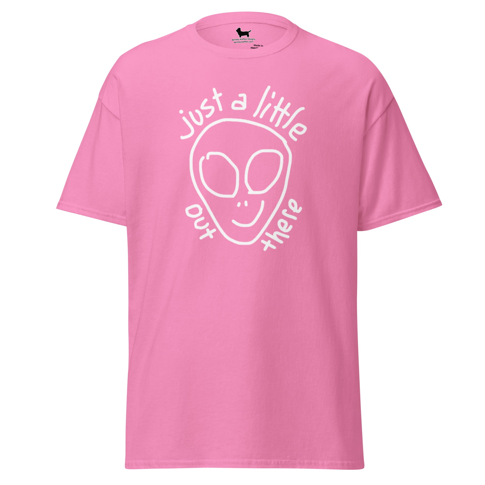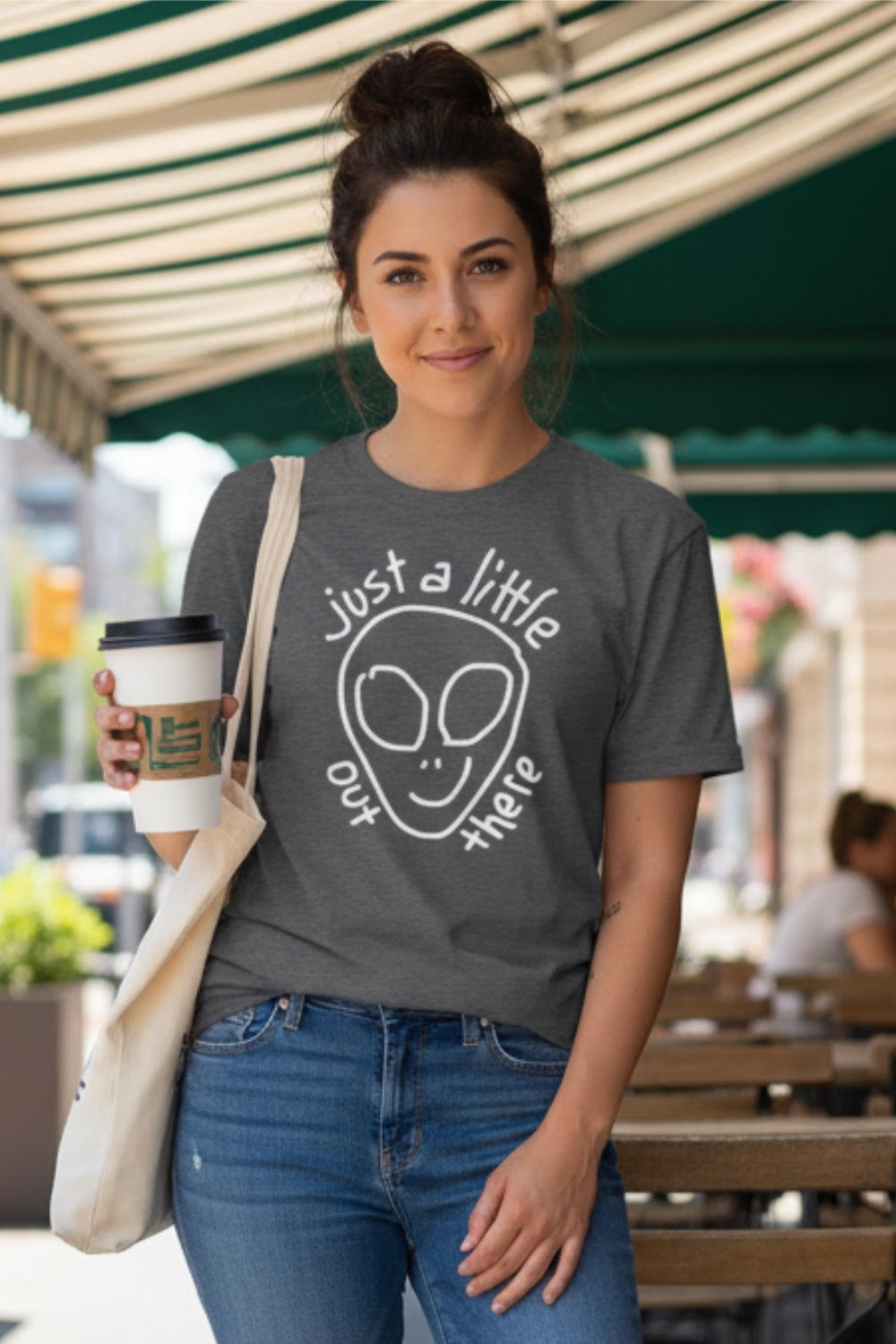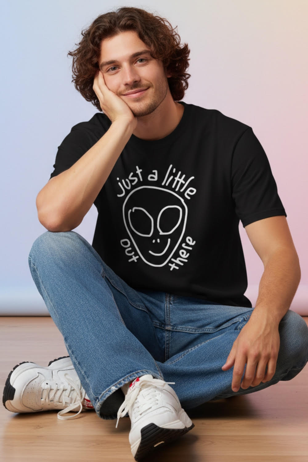 Introducing the "Just a Little Out There" T-shirt from our exclusive "Wear Your Feelings" collection! This unique tee features a hand-drawn alien face that perfectly captures the spirit of being a little different. The playful text surrounding the alien boldly proclaims "Just a Little Out There," inviting you to embrace your individuality and express your feelings with style. Made from soft, high-quality fabric, this T-shirt is designed for comfort and self-expression. Wear it confidently and let the world know that being a little out there is what makes you truly special! Perfect for anyone who wants to showcase their whimsical side while staying comfy and cool.
