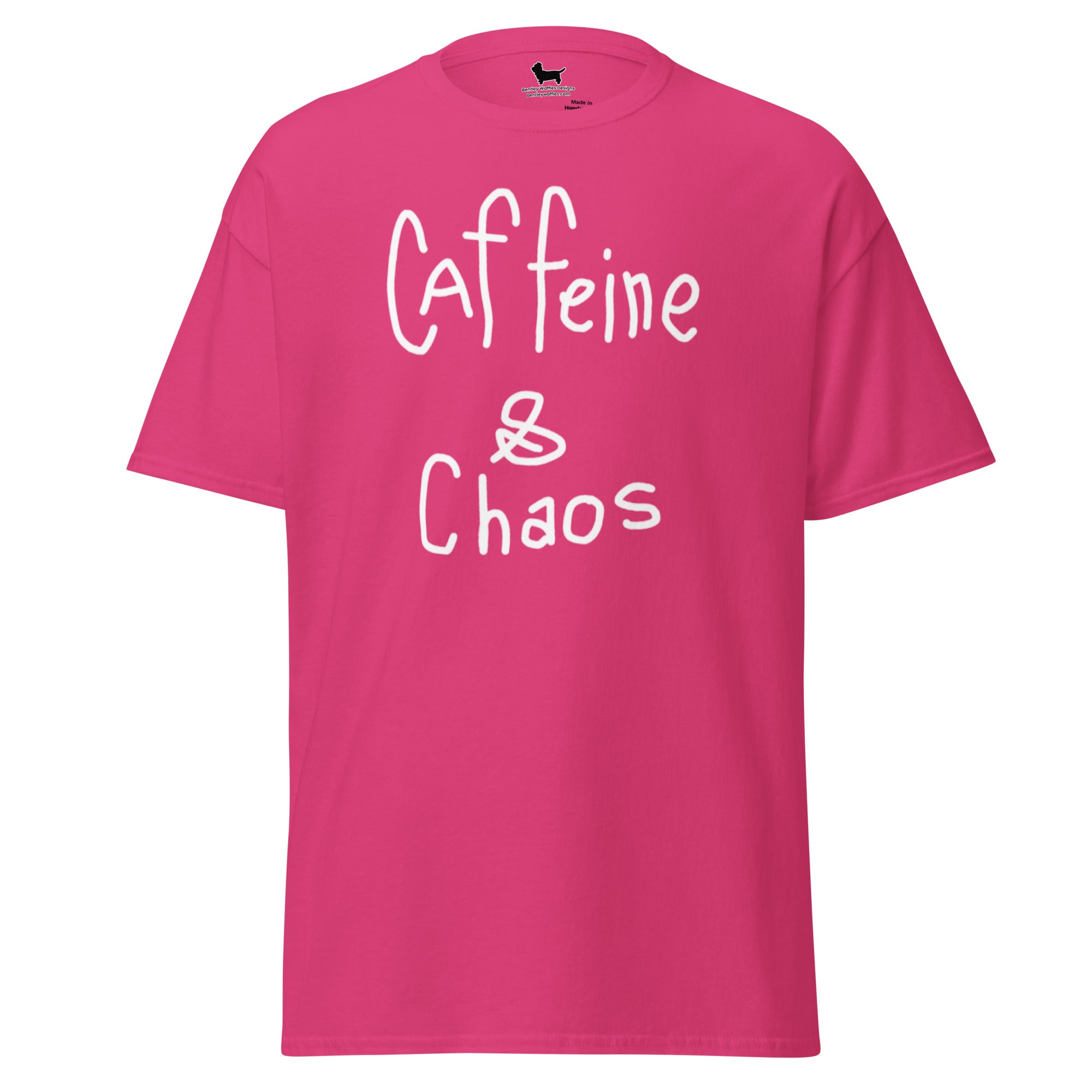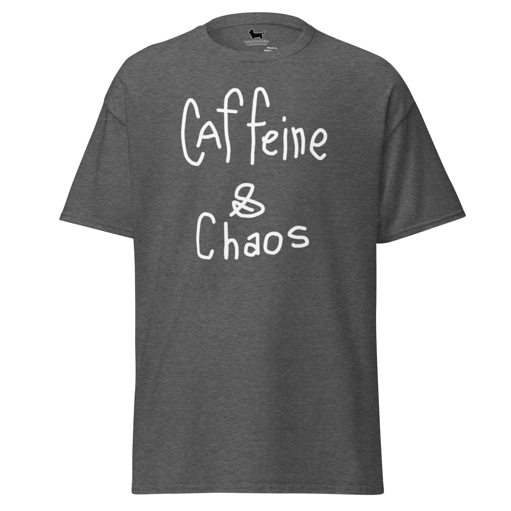 Unleash your inner whirlwind with our "Caffeine and Chaos" T-shirt! Perfect for those who thrive on the buzz of coffee and the excitement of life’s delightful messiness, this shirt captures the essence of your energetic spirit. Made with super-soft fabric, it's as comfy as your favorite mug of java. Whether you're conquering Monday madness or fueling a late-night adventure, this tee is your go-to for expressing your love of caffeine-fueled chaos. Wear it loud and proud, and let the world know that you embrace the beautiful chaos of life!