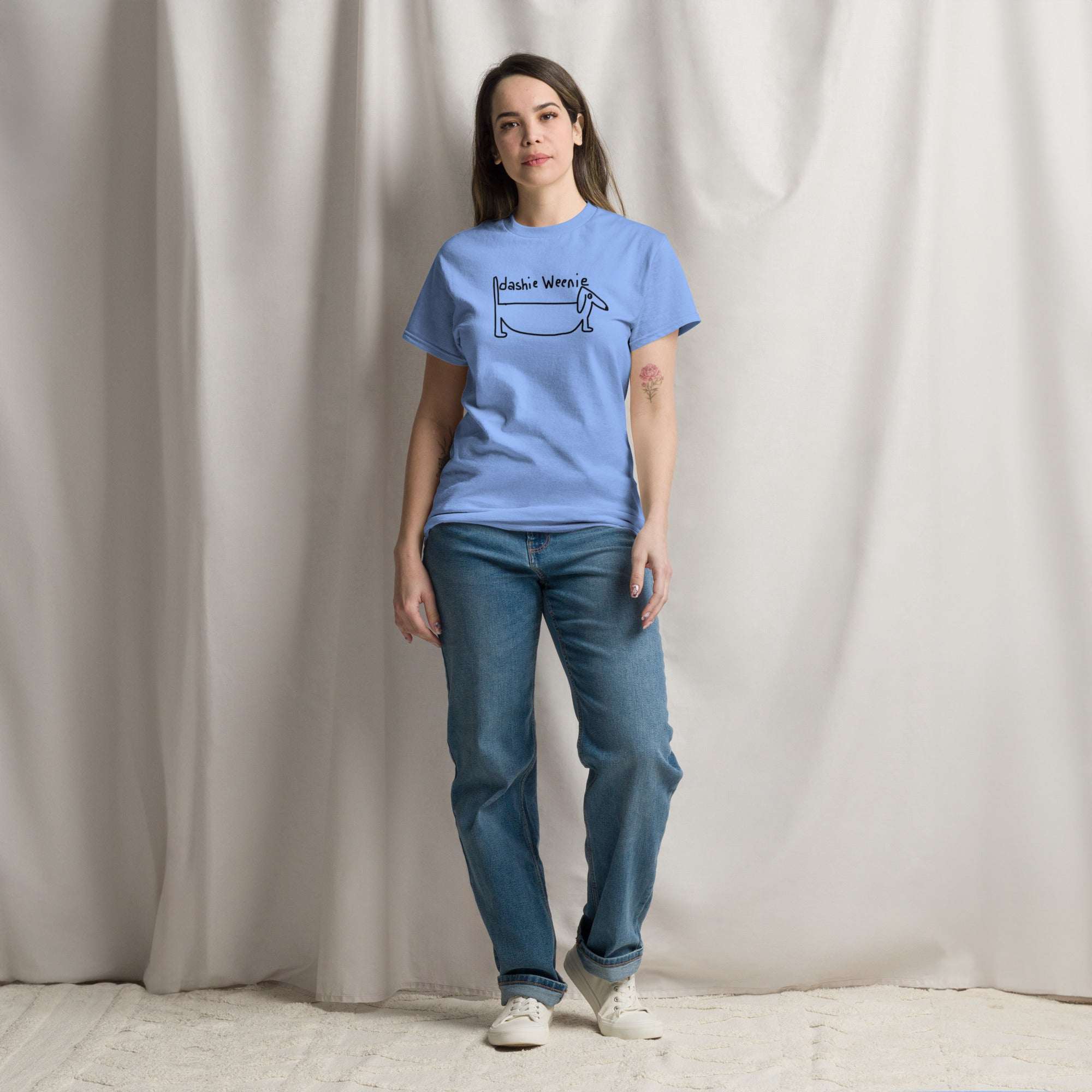 Discover our unique T-shirt from the "Hand Drawn Silliness Collection," featuring a delightful design of a "Dashie Wennie" – a whimsical Weenie dog! This specially crafted shirt showcases sharp, maintained lines that highlight the playful character of this adorable mini dog. Perfectly tailored for a comfortable fit, it’s an ideal choice for dog lovers who appreciate artistic charm. Add a touch of whimsy to your wardrobe with this stylish T-shirt and celebrate your love for these playful pups! Get yours today!