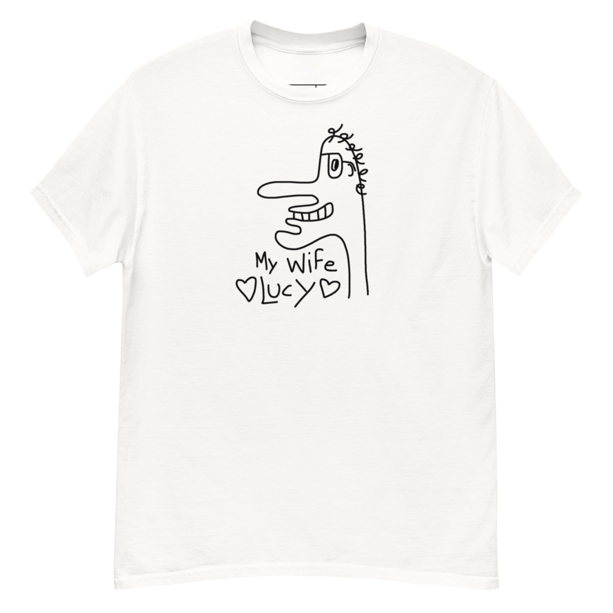 Welcome to "My Wife Lucy," where whimsy meets wearability! This delightful unisex classic T-shirt features a hand-drawn illustration of a fun-loving and forgiving wife, captured in a silly and playful design. It's perfect for those who appreciate a touch of goofiness in their wardrobe and want to make a lighthearted statement. Crafted for comfort and style, this shirt fits great on everyone and is ideal for any casual occasion. Plus, you can customize this shirt just for you! Reach out to us via our contact page, and we’ll create a unique design that reflects your personality. Embrace the fun—get your "My Wife Lucy" T-shirt today!