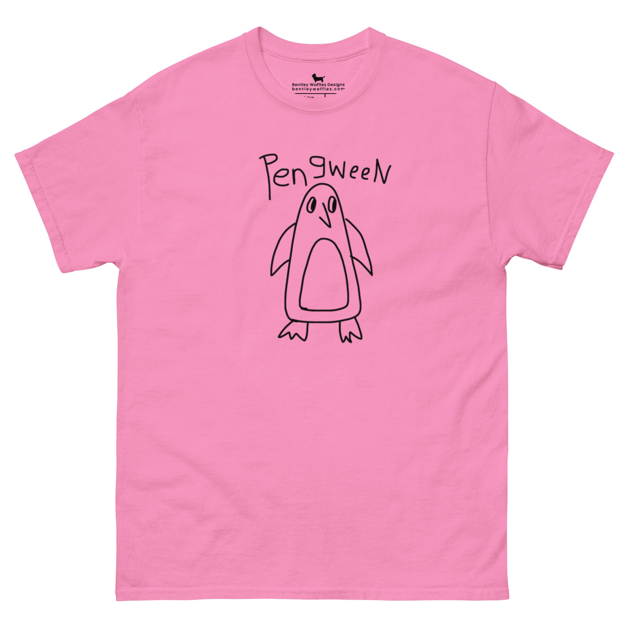 This classic fit unisex T-shirt features an adorably quirky hand-drawn "PENGWEEN" to add a whimsical touch. Designed for those who love animals and appreciate a good laugh, this tee is perfect for showcasing your love for all things cute and silly. Made for comfort and style, it comes in a range of colors to suit your personality.
