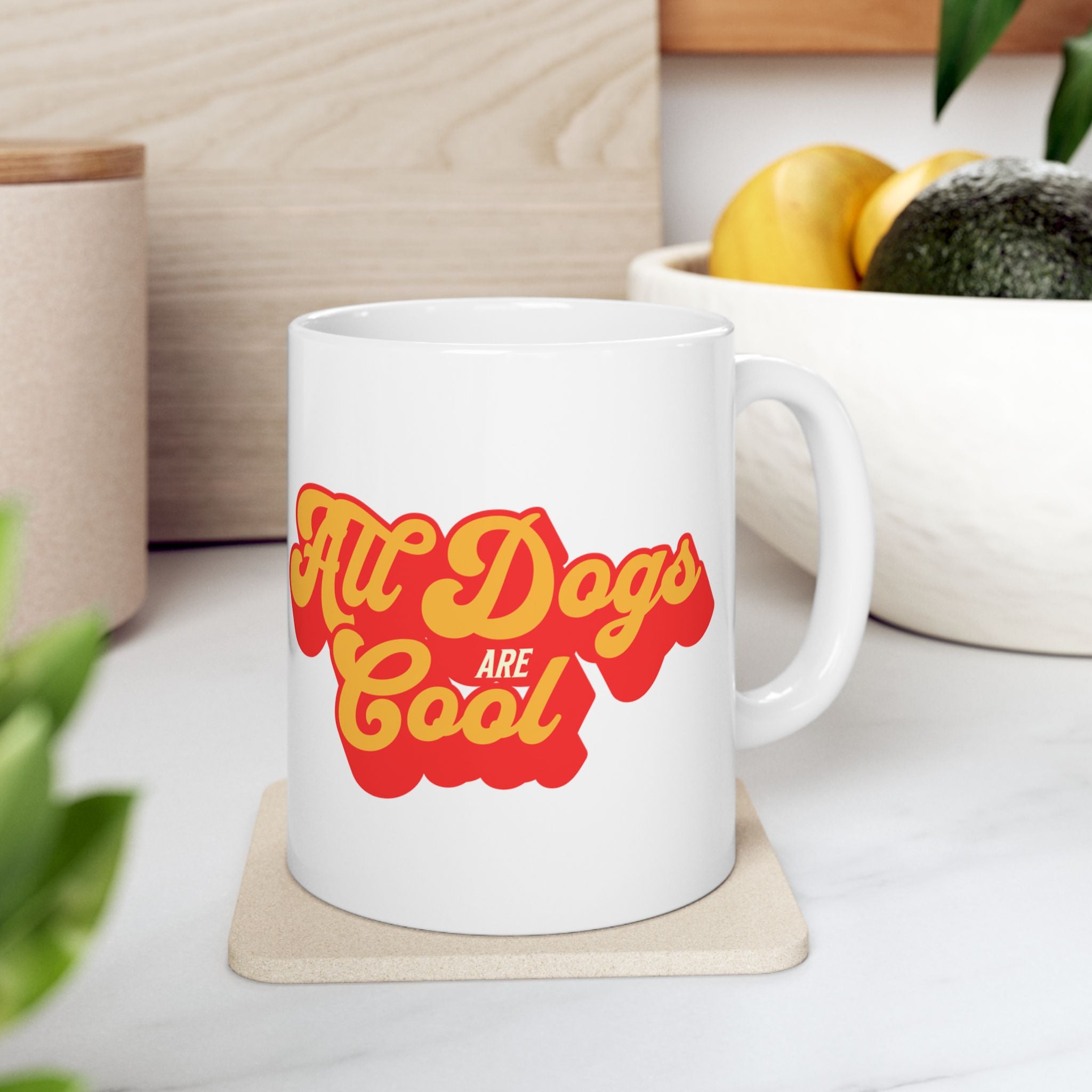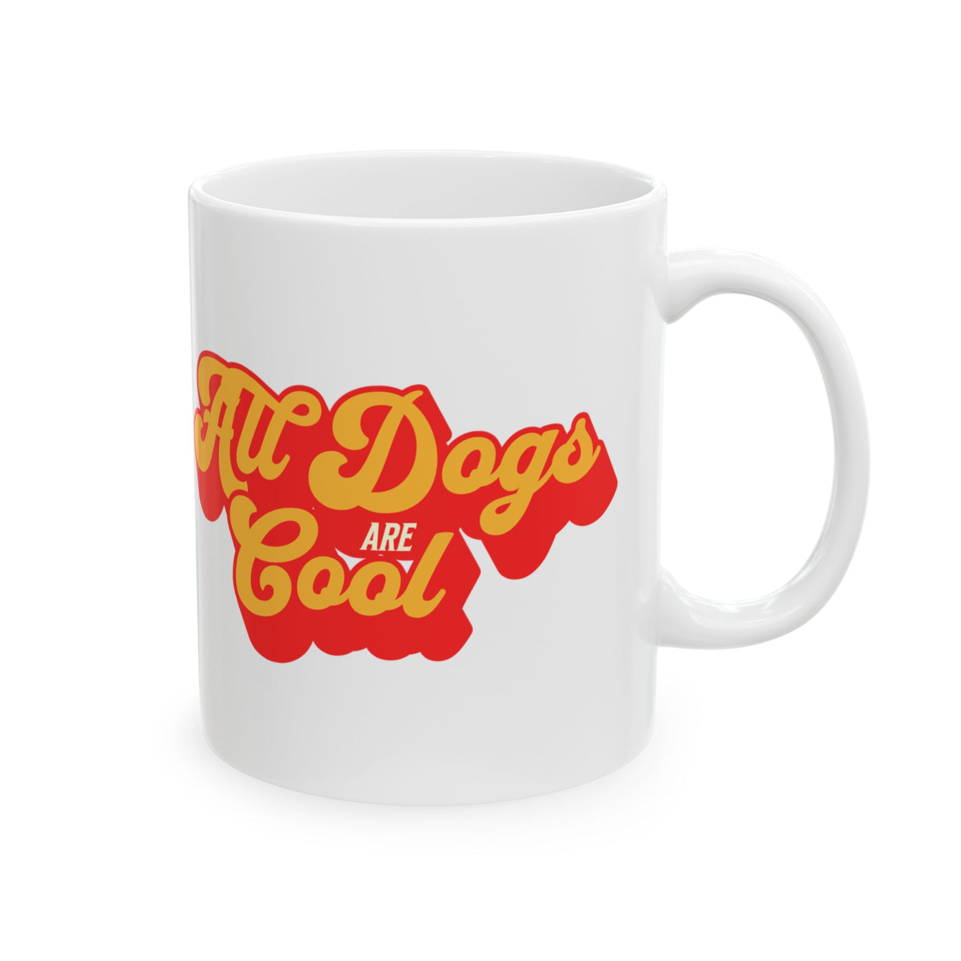 Warm sunlight through a kitchen window. The clink of enamel, the slow steam curl of fresh coffee. This ceramic mug carries a retro ‘All Dogs Are Cool’ design that feels like a small, loyal celebration every morning. The colors pop—muted vintage tones and a playful layout—so each sip becomes a tiny ritual: a moment to smile about walks, muddy paws, and that particular dog gait that never fails to brighten the day. It sits naturally in the hands of someone who loves canine character, whether you’re gearing up for a long day out with your pup or winding down on a slow weekend. Bring it out on chilly mornings, bring it to dog park meetups, or tuck it beside your favorite reading chair—the mug adds a friendly, slightly nostalgic beat to everyday life.