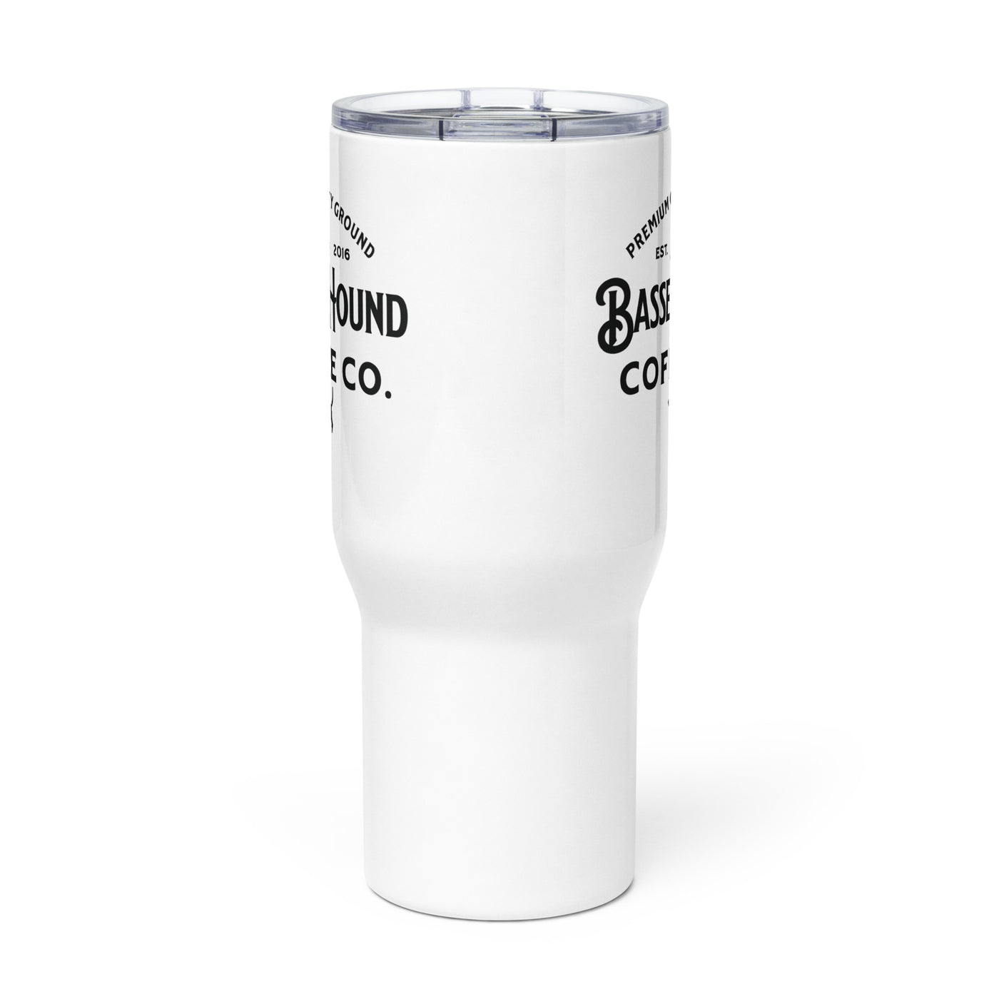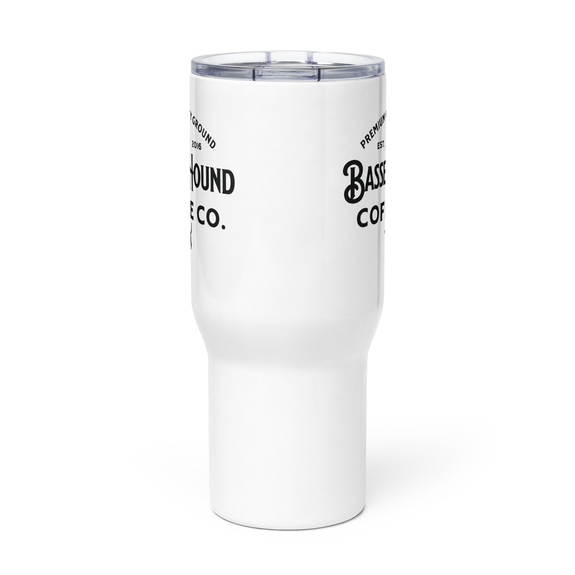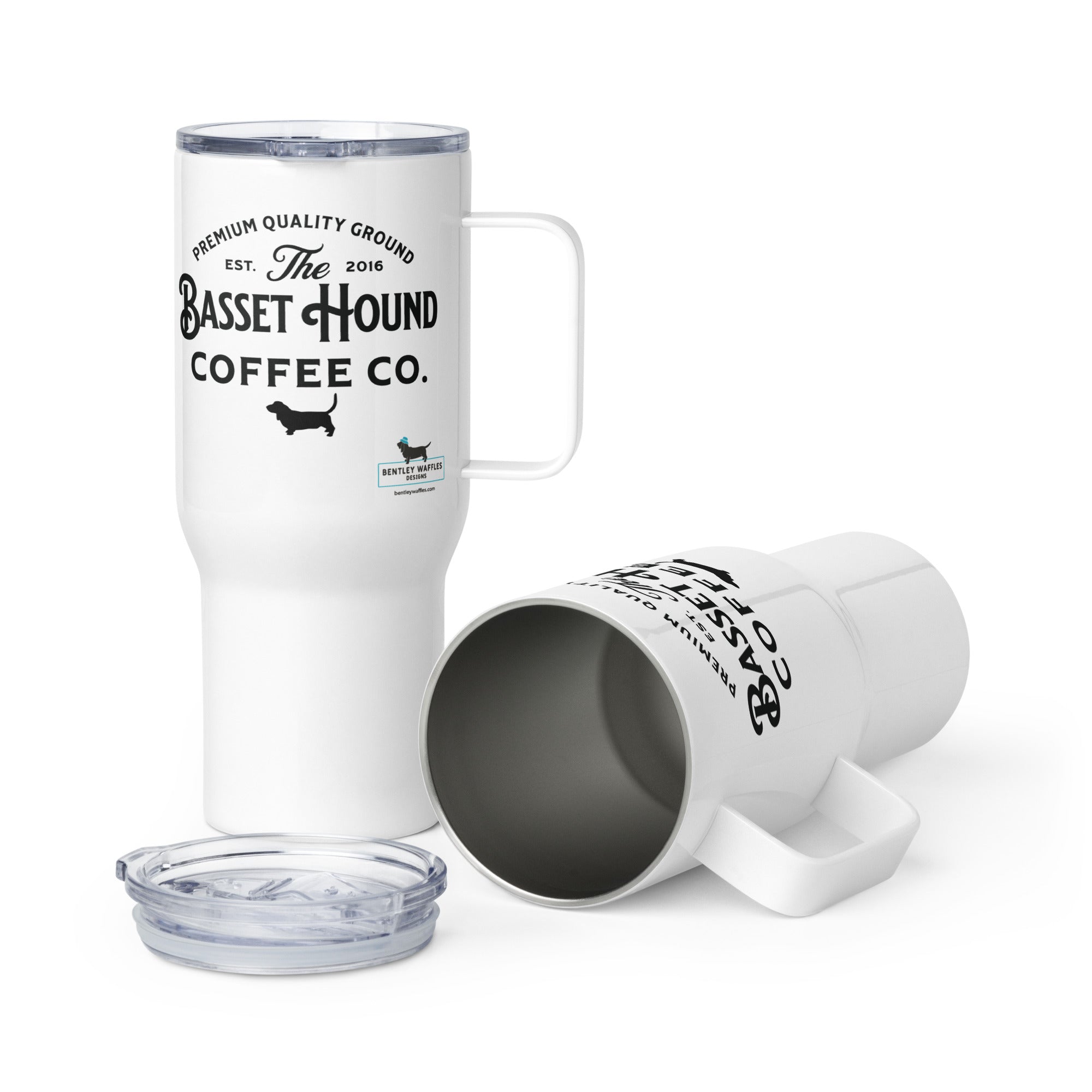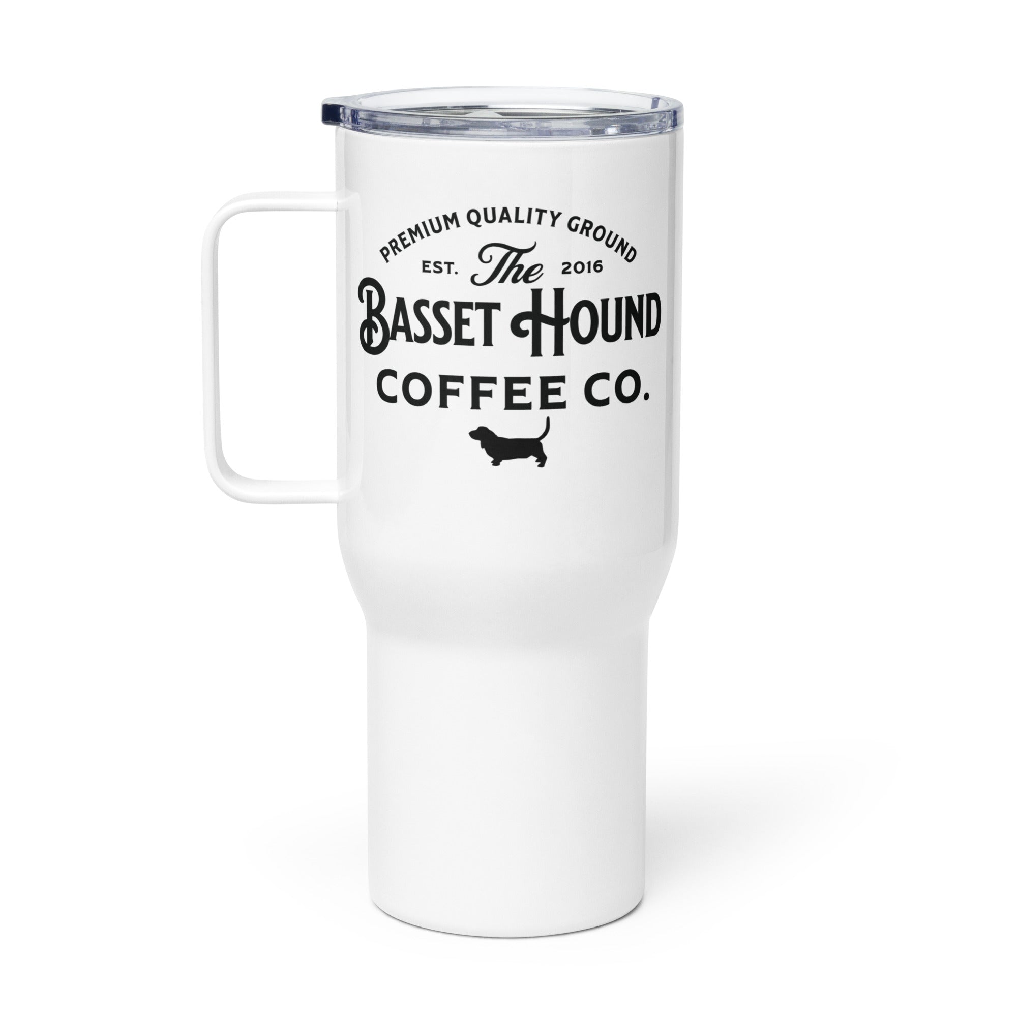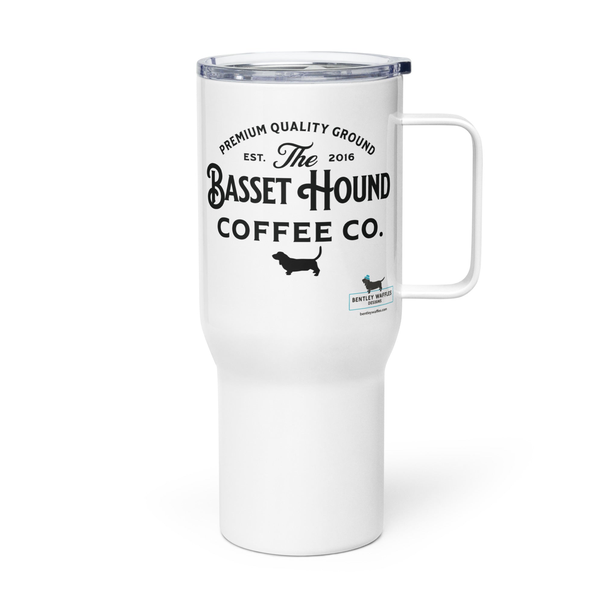 Introducing our stylish 25-ounce stainless steel travel mug, perfect for coffee lovers and dog enthusiasts! Featuring an adorable silhouette of a Basset Hound, this mug is printed on both sides with "Basset Hound Coffee Company," making it a delightful accessory for your daily adventures. Designed with a convenient handle and a secure plastic press-in lid, it fits perfectly in your car cup holder, allowing you to take your favorite beverages on the go. Please note that this mug is hand wash only, ensuring it maintains its charming design for years to come. Whether you’re heading to work or embarking on a new adventure, this travel mug is the ideal companion for every coffee lover!
