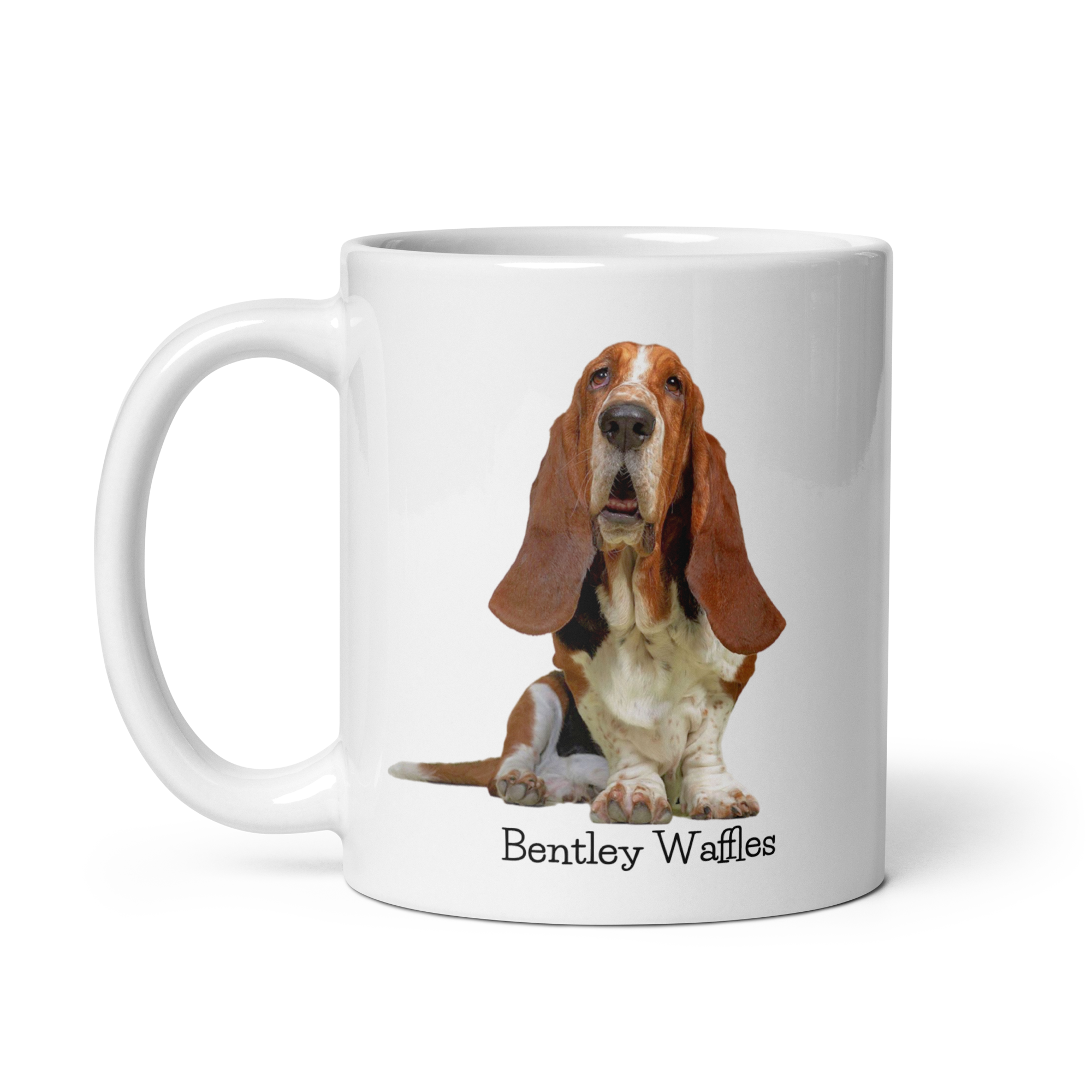 Introducing the Bentley Waffles Mug, a delightful tribute to your favorite basset hound! This charming 11-ounce mug showcases a whimsical design featuring Bentley Waffles, perfectly capturing the spirit of this lovable breed. Ideal for sipping your morning coffee, tea, or any beverage in between, this mug is both functional and stylish.