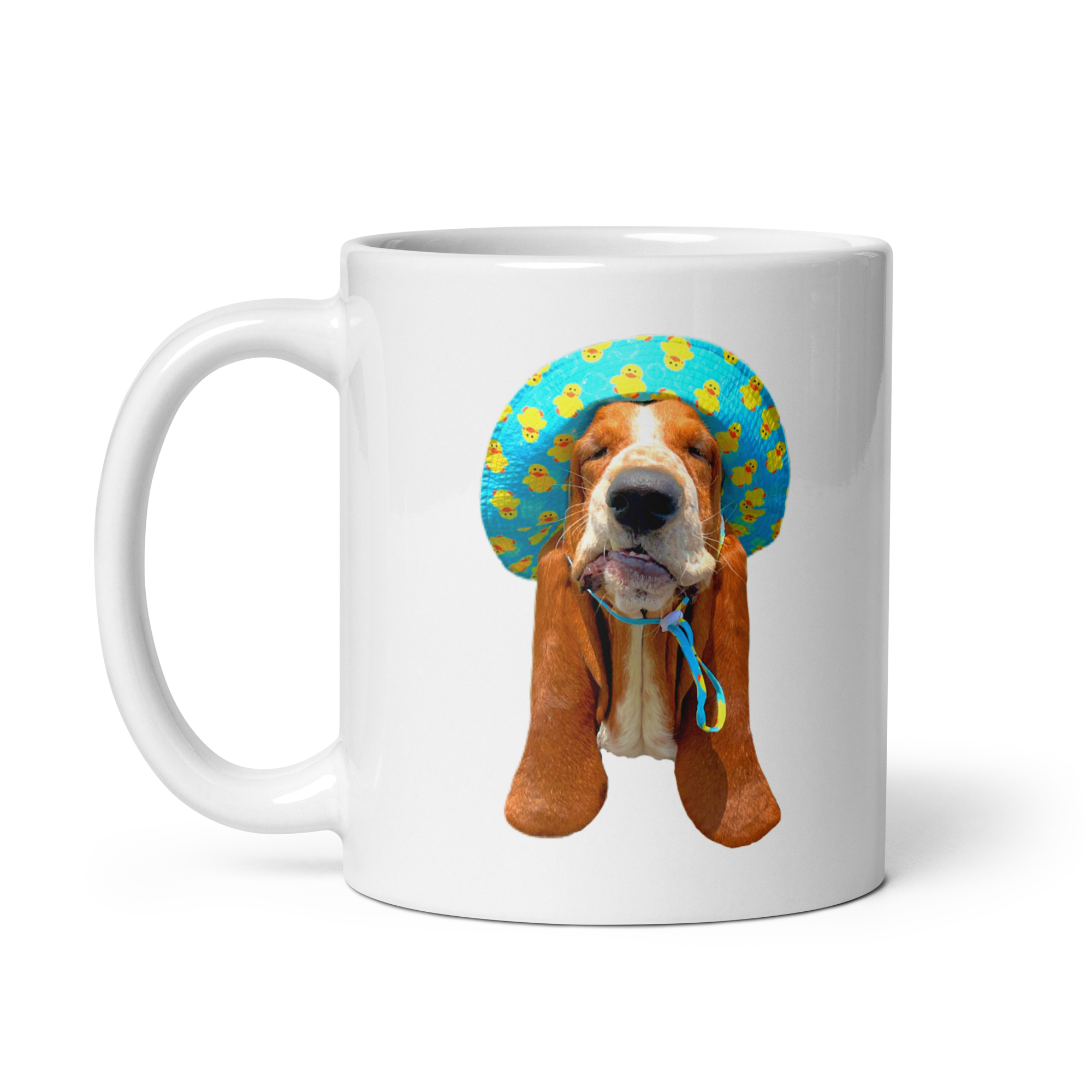 Introducing the perfect companion for your coffee or tea moments: our 11-ounce mug featuring Bentley Waffles, the cheerful basset hound sporting his signature ducky hat! This fun and delightful mug is printed on both sides, ensuring that its charm is visible from any angle. Made from durable materials, it's dishwasher and microwave safe for your convenience. Whether at home or the office, this unique mug is sure to bring smiles to your coworkers and friends. Start your day with a dose of joy and let Bentley Waffles brighten your morning routine!