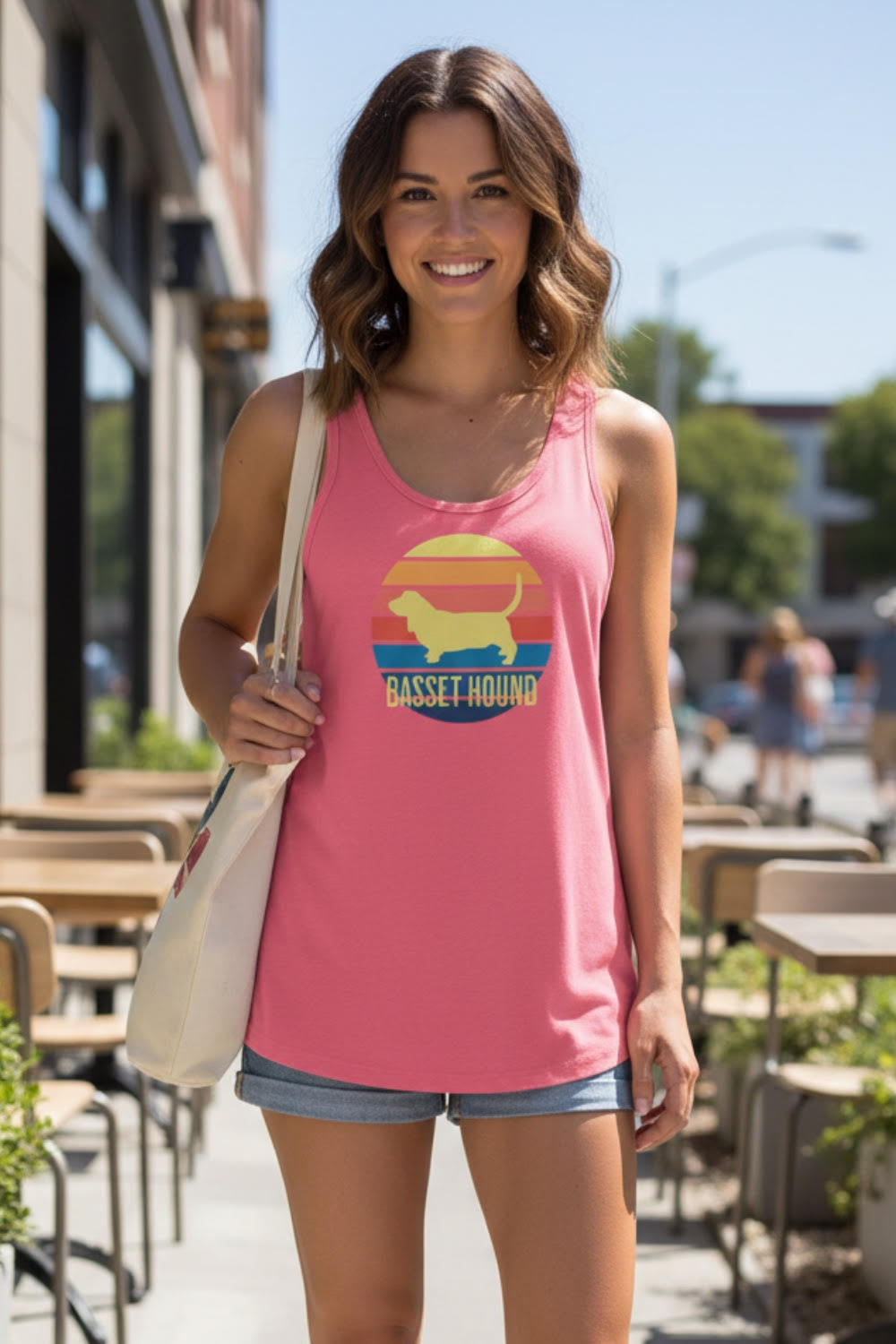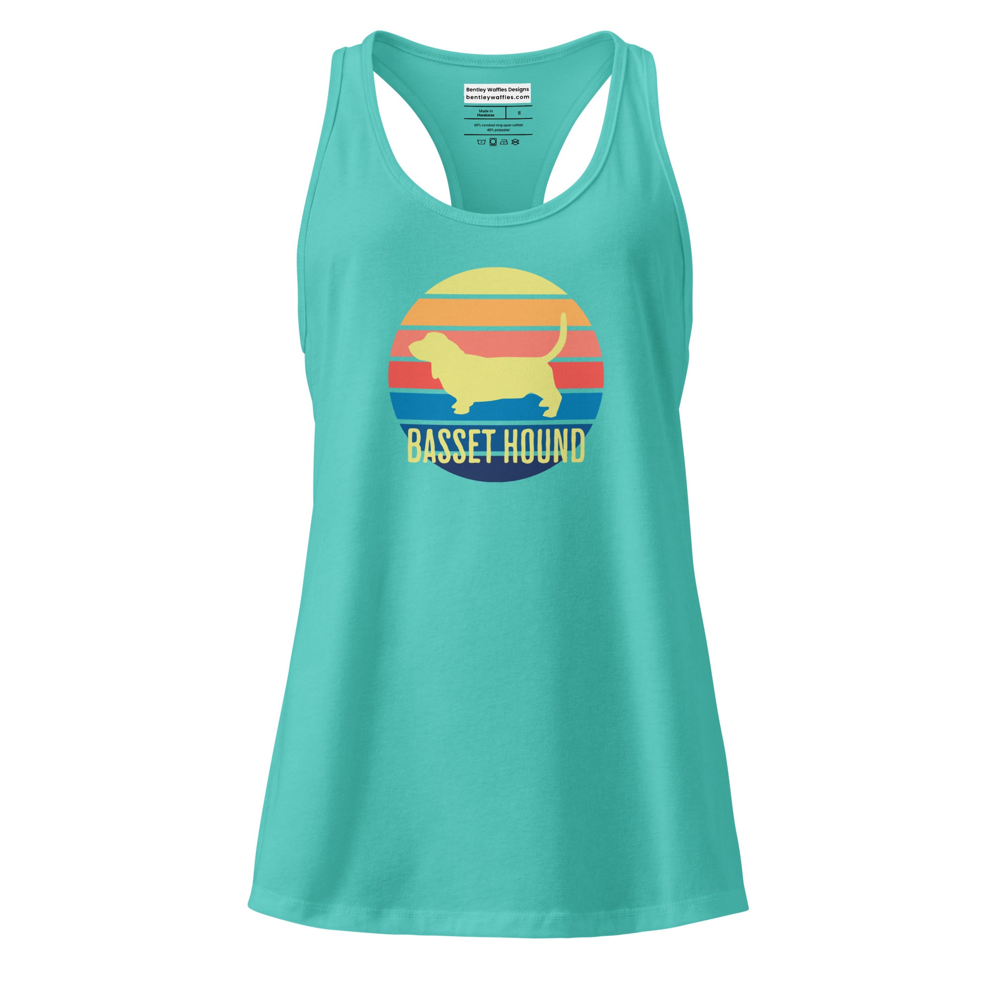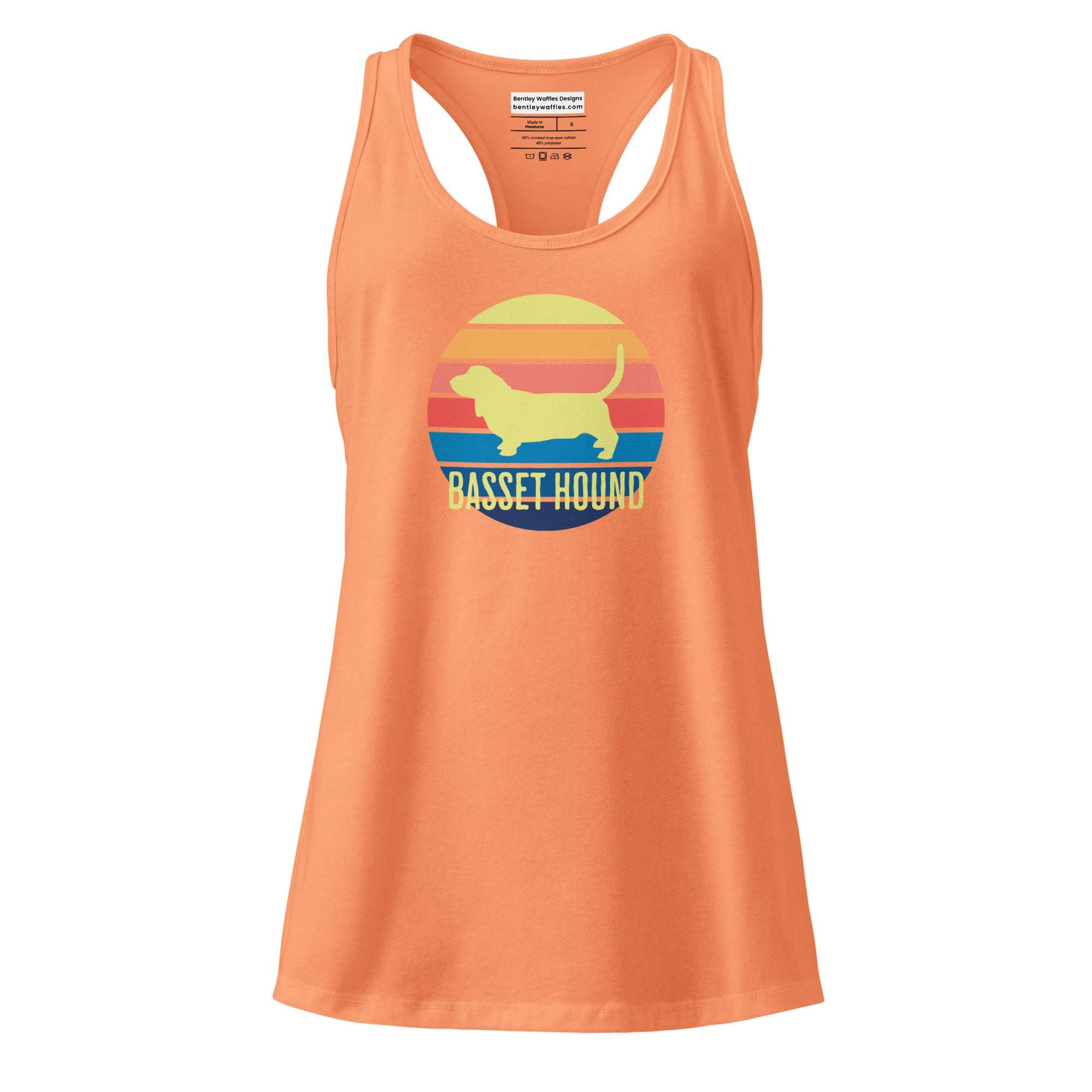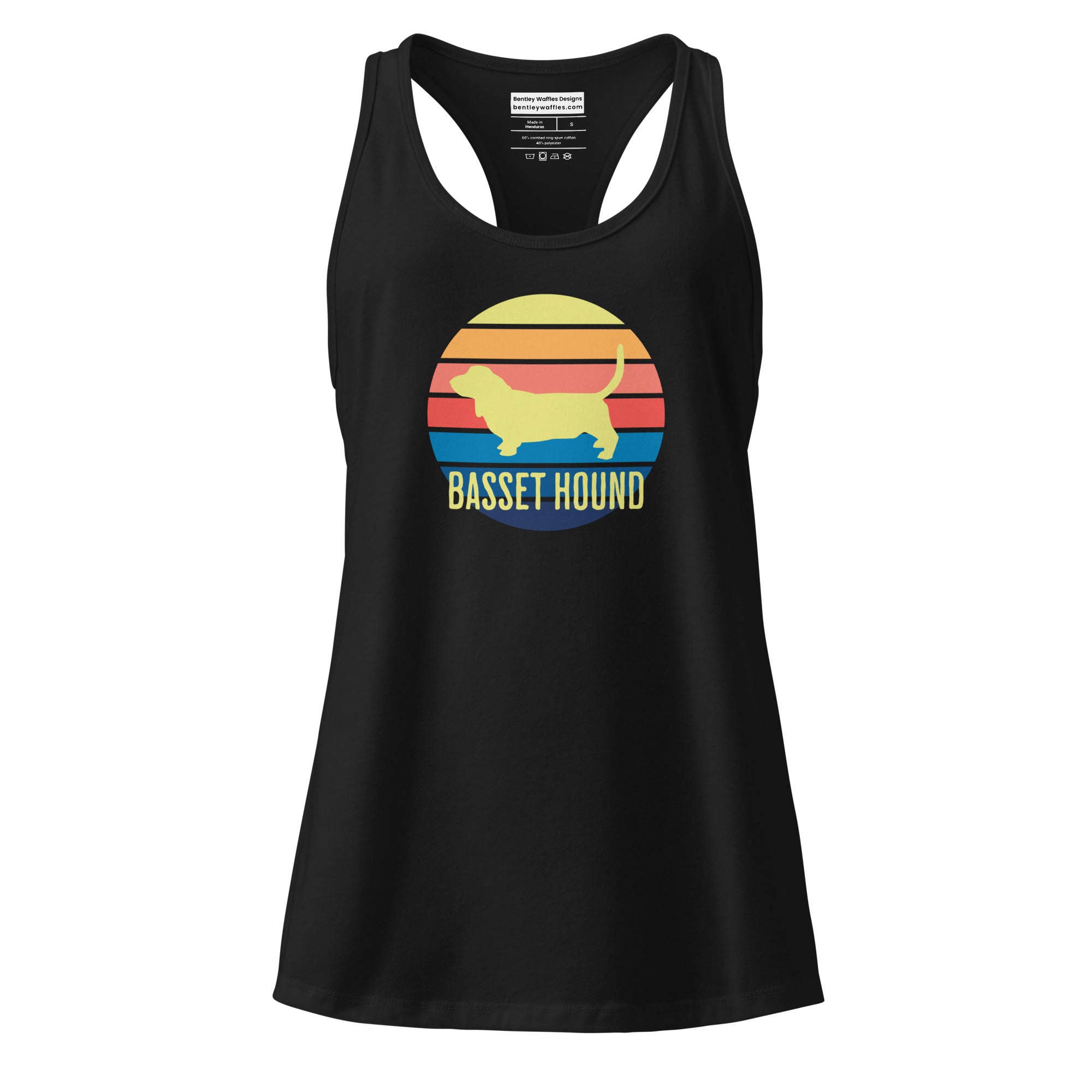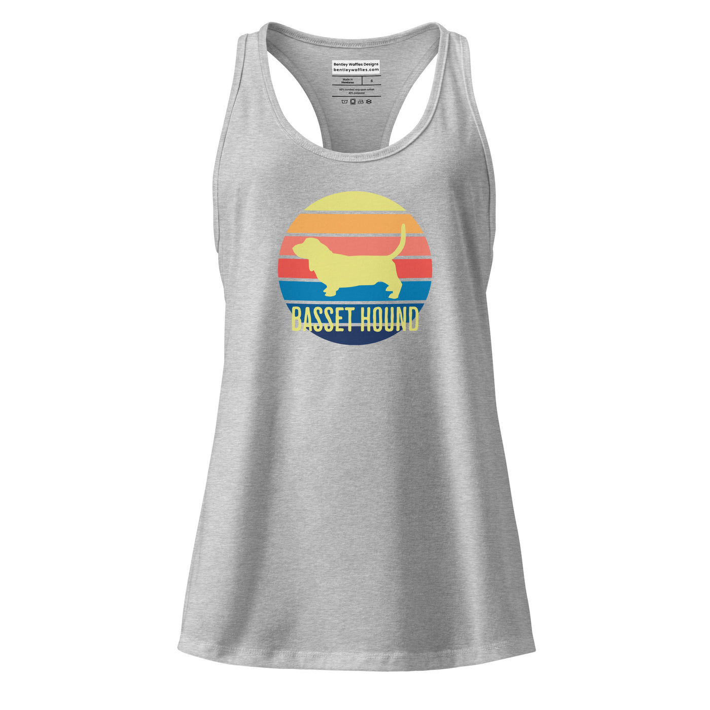 Introducing our slick Racerback Tank Top featuring a stunning basset hound sunset design! This fitted tank is your go-to choice for everything from intense gym sessions to weekend errands. Made from stretchy, breathable fabric, it flatters in all the right places while keeping you cool and comfortable. Show off your love for dogs, especially basset hounds, with this stylish and versatile tank. Live the cool dog life with this awesome top that combines fashion and function seamlessly!