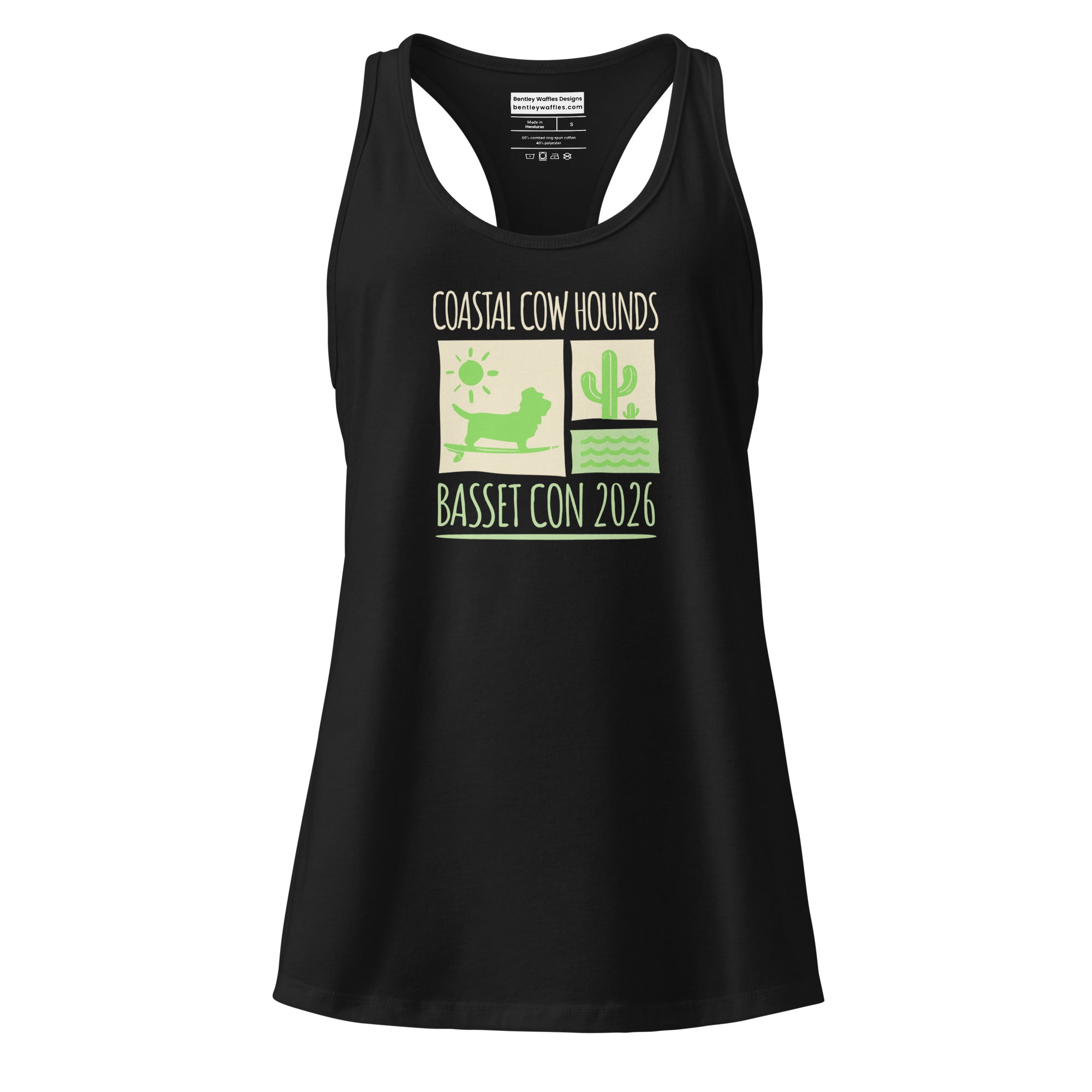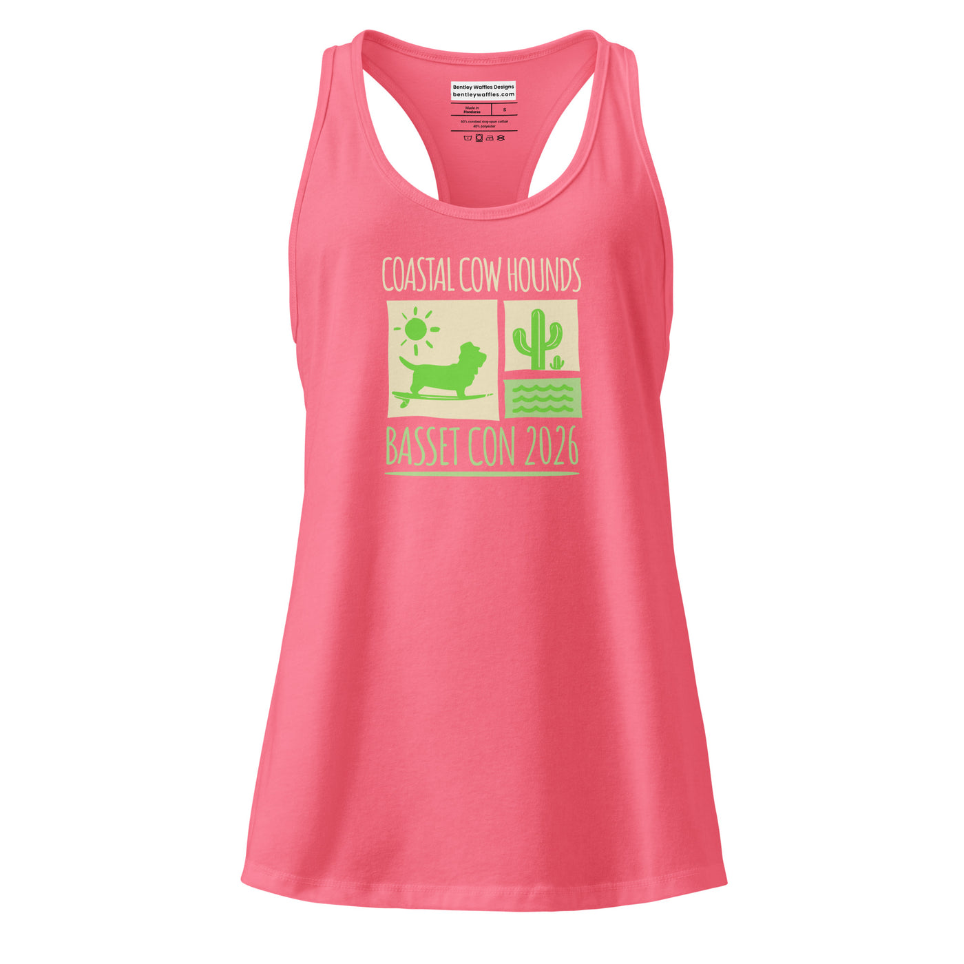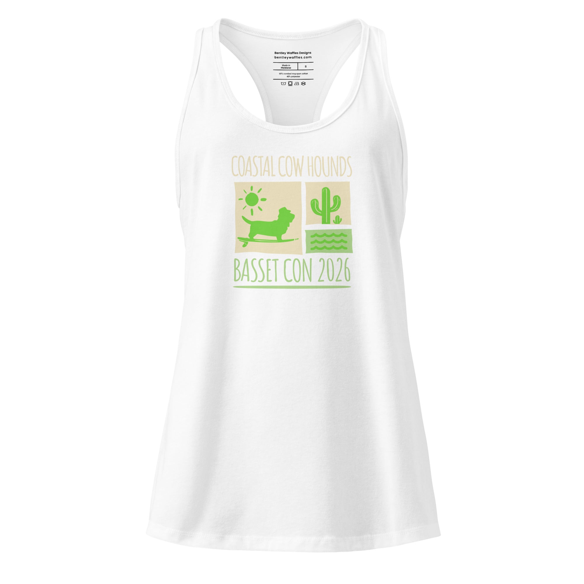 Introducing the Surf and Sand Basset Con Women's Fitted Racerback Tank Top, designed for Basset Hound enthusiasts who love the coastal vibes of Carmel-by-the-Sea, California! This sleek racerback tank is your go-to choice for everything from relaxing weekends to energetic outings at Basset Con. Made from soft, stretchy fabric, it offers a flattering fit that hugs all the right places while ensuring maximum comfort. With its stylish design reflecting the Surf and Sand theme, this tank top is perfect for showcasing your love for Basset Hounds while enjoying the warmth of the sun and the beauty of the beach!