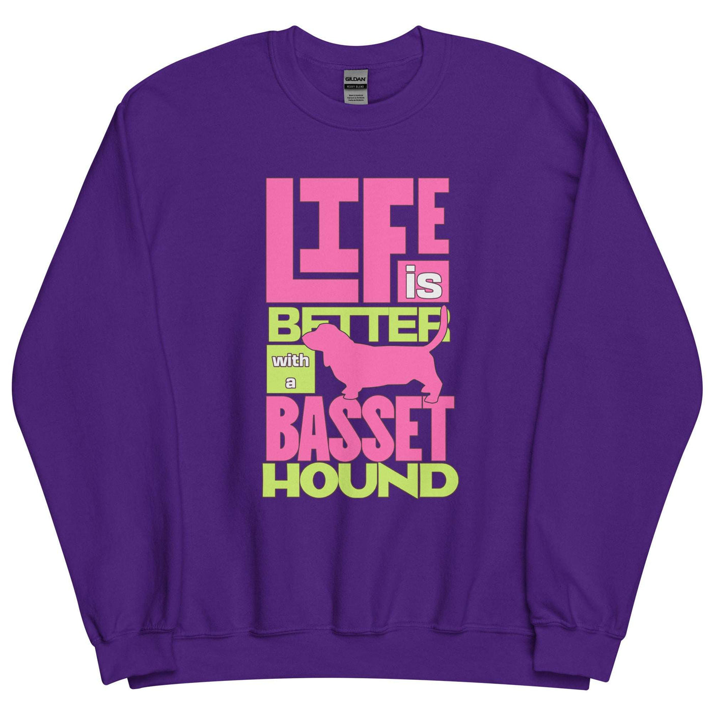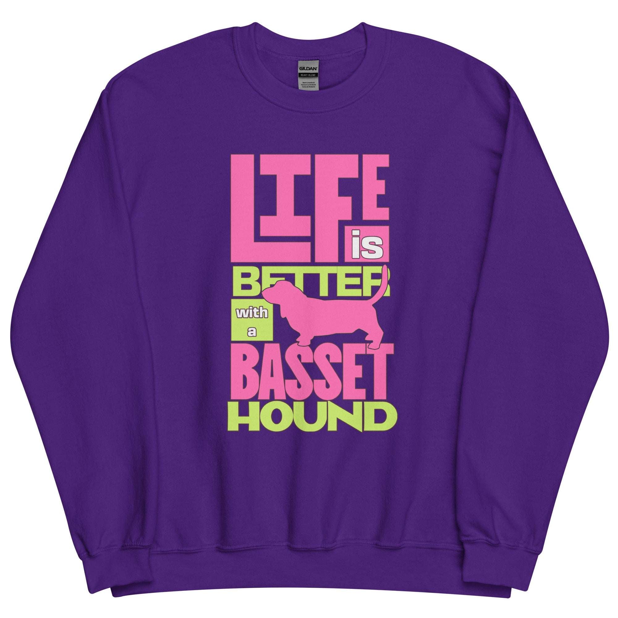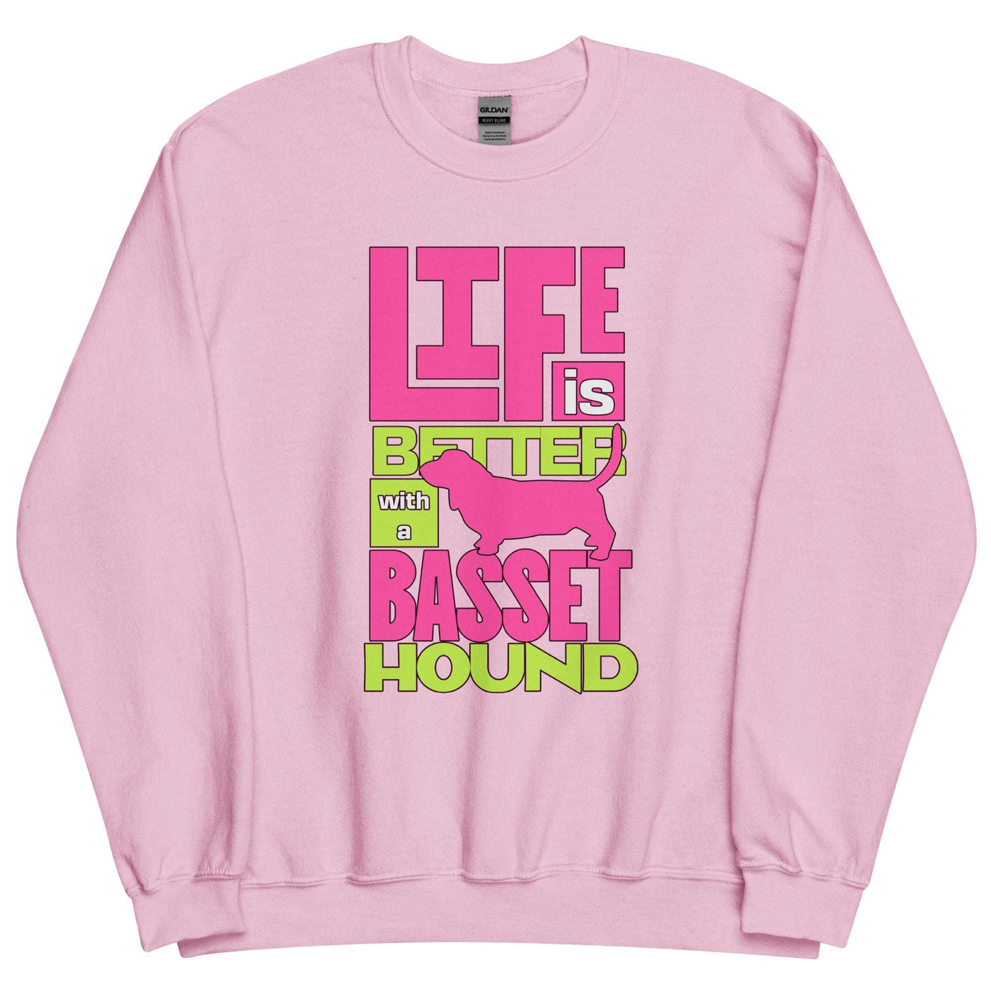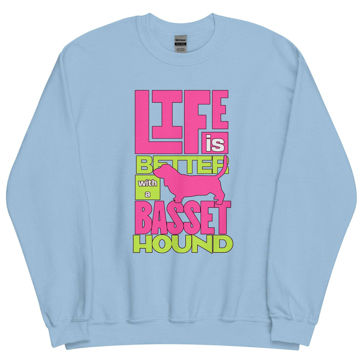 Stay cozy and stylish with our “Life is Better with a Basset Hound” sweatshirt! Crafted with a perfect blend of 50% cotton and 50% polyester, this sturdy yet soft classic-fit sweatshirt is designed for ultimate comfort all year round. Featuring an eye-catching silhouette of a basset hound and bold, vibrant lettering, it's a fun way to show off your love for our adorable companions.